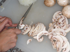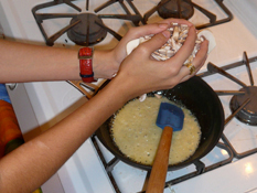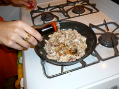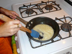 2. Saute’ onions, garlic, and chile peppers in oil until the onions are soft (about 4-5 mins., then let cool)