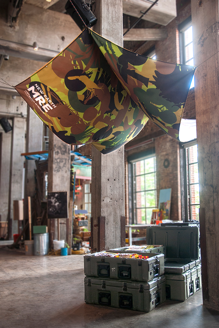 Preparing for climate change is not just about prevention, but includes disaster preparation like New Earth MRE (Meal, Ready to Eat). Each of these packages is specially dehydrated by the artist, Tattfoo Tan, to make them shelf stable. If kept away from sunlight and moisture, MRE should last up to a year from the date prepared. Food can be rehydrated by adding boiling water and covering it with a lid for 20-30 minutes to expedite the process, then cooking until the desired texture is reached. For centuries, dehydrating food has been seen as a survival necessity. Many believe this preservation method is the safest, most affordable and best way to preserve flavors of foods. The dehydration process removes moisture from the food so that bacteria, yeast, and mold cannot grow. The added benefit is the dehydration process minimally affects the nutritional content of food. In fact, when using an in-home dehydration unit, 3%-5% of the nutritional content is lost compared to the canning method which losses 60%-80% of the nutritional content. Additionally, vitamins A and C, carbohydrates, fiber, potassium, magnesium, selenium and sodium are not altered or lost in the drying process. Therefore, the end result is nutrient packed food that can be stored long term. In the aftermath of Hurricane Sandy, here in New York City, food supplies were cut off. The local supermarket was flooded and food was destroyed and had to be thrown away. The National Guard was handing out food rations in some places, and the queue was long especially when time waiting in line could be better spent in clean-up and recovery. If everyone can take some effort to stock up their own emergency food ration, it will help in recovery efforts. Modern society is so used to acquiring its food from supermarkets, delis or restaurants. We have to have provision for times of emergency both for ourselves and our community at large. Hurricane Sandy is a wake-up call. When disaster happens, there will be no food, no petrol, and no car to buy any food anywhere. Why place ourselves in a position of helplessness? We should not despair, but be prepared.