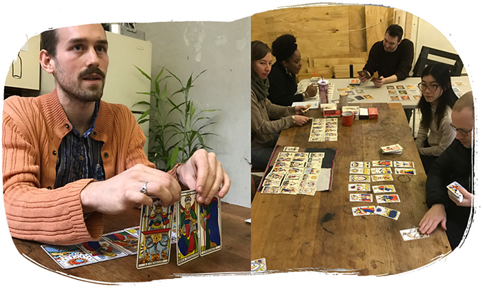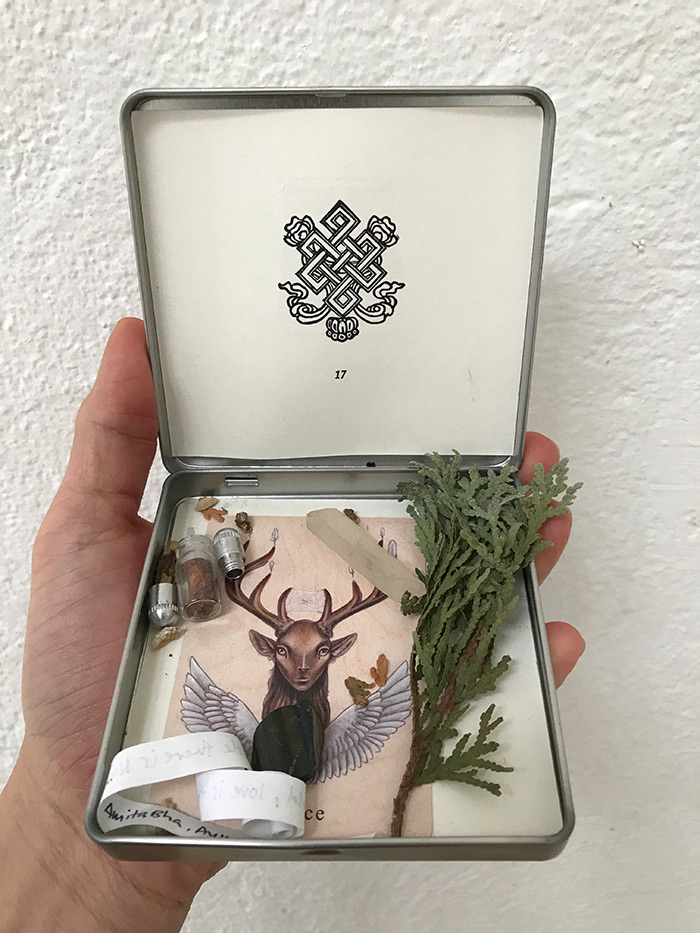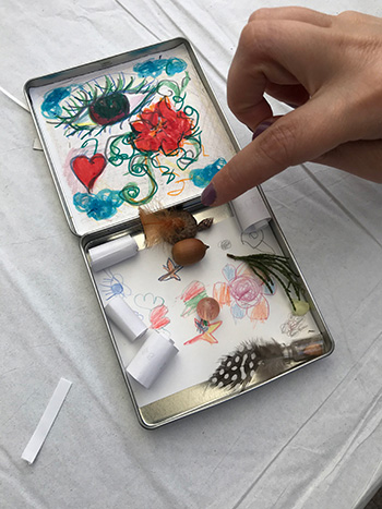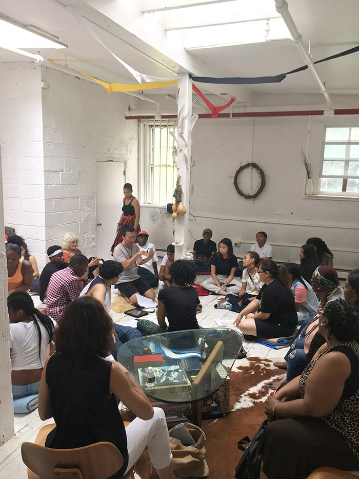 No Longer Empty's (EMERGE)NCY ART ZONE: A Community Art & Data Lab at Kings County Hospital Workshop on designing your own oracle cards and a seven directions opening blessing at the alter.