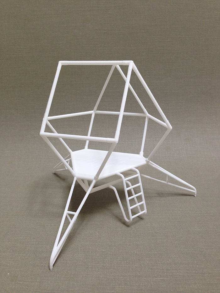 Borrowing the visual and embedded language of a spacecraft and combining the shape of VE/torus, I formulate a meditation or observation platform. A spaceship shape also added a layer of playfulness tailored for the young ones.