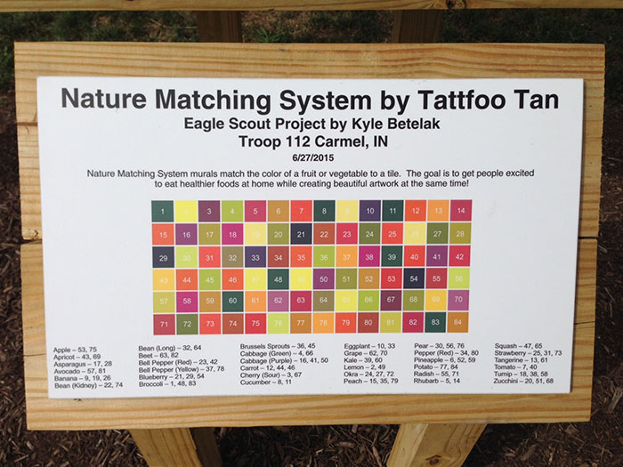 Nature Matching System at Seymour Dual language Academy, Syracuse, New York Nature Matching System, 2014, acrylic paint on boards, Seymour Dual Language Academy, Syracuse, New York This mural and curriculum was developed by EDU 300/600 - New Directions in Social Sculpture: Art, Food, Community at Syracuse University and taught by Marion Wilson and Tattfoo Tan Syracuse University Students: Daniel Blaushild, Jungone Cho, Becky Cohen, Jaimeson Daley, Jason Foggie, Ryland Heagerty, Victoria Lee, Stacey Lindbloom, and Brian Luce. Seymour Dual Language Academy Third Grade Team: Courtney Colello, Taylor Durand, Nicole Heath, Stephanie Pachon, medelina Garcia - SU Literacy Corp. NMS mural was painted by Seymour Dual Language Academy Third Grade Students: Odlanier Andrades, Emily Aponte, Yeh dessa Arroyo, Marcel Augustono, Luis Alexis Ayala, Macih Bailey, My'Nisa Envy Cheryl Bailey, Gerardo E. Becerra, Nickolas David Bondi, Kismet Burroughs, Ali'yonna Lamarria Broadwater, Kevaughn Cannon, Felipe Carrasquillo, Andrew Jermaine Carter, Sainey Alisha Castro, Aleaneris Ceballos, Carlos Eliziel Cirino, Willmer Contreras, Saniya Cooper, Jatziel Cortes, Luis E. Cruz, Yanira Cruz, Demetria Daniels, Jove Vaughn Davis, Victor John Diabo, Felix Javier Diaz-Rodriguez, Nevaeh Frazier, Ellena Hope Galeas, Makayla Lee Gathings, Malachi Lee Gathings, Terriana Marie Gathings, Jovany Messia Gonzalez, Jada Danise Danee James, Carmen Maranyeis Jiminez, Donari Love Jones, Shannon King, Dameon Green Lynch, Christian Alexis Lugo, Abdiel Maldonado, Jariel Jose Martinez, Issac Juelz Mendez, Ly'naisha Murphy, Nautica Murray, Qui'nyah Pace, Elvis J. Pacheco-Ocasio, Luis Yadeil Parrilla Fuentes, Shaneidis Perez Pinet, Joemyl Pizarro, Naisharelys Pizarro, Elianie Kristine Qiules, Luis Ramos JR, Toddricka Marie Rice, Kimberly Nicole Rivas, Emanuel Rafet Rivera De Jesus, Luis Yariel Rodriguez Feliciano, Nicolette Rodriguez, Taysha L Rodriguez, Dorian Christopher Roller, Natasha Roman, Angelie M. Rosado, Naimah Ruffin, Lizmarie Santiago, Shayon Sessions, Markel Sholtz, Jahvel Taylor LaVar Sullivan, Yanieliz Marie Steele, Issac Taborda, Shaniece Thomas, Jaymere Tucker, Imari Williams Ta'Niyah Wilson, Niky Yang Special thanks to: Geovanti Steward, Rebecca Jackson,Paul NoJaim, John Cardone, Melissa Gardiner, and Jillian Nakornthap This project is made possible by: Central New York Community Foundation and 601Tully: Center for Engaged Art and Research, Syracuse University