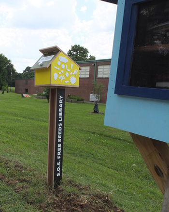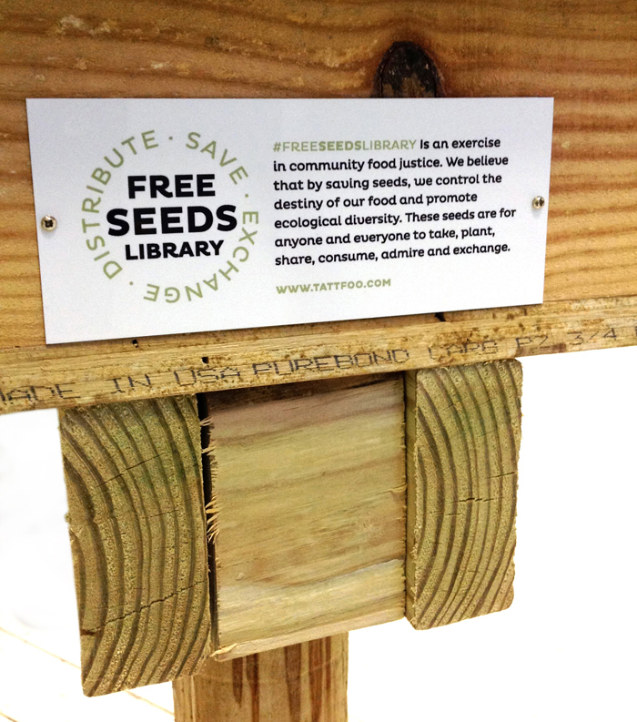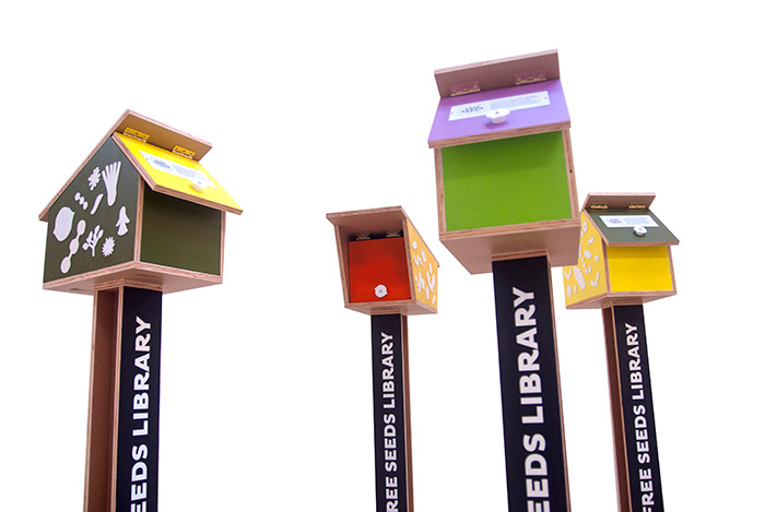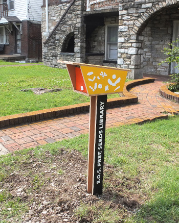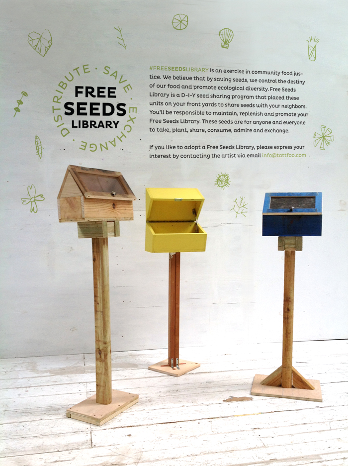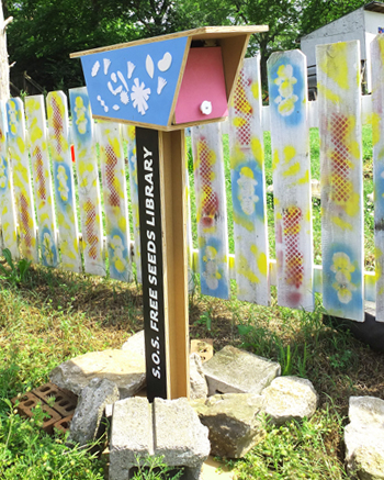 Common interests: Mobility and transformation of public life Curated by Sara Reisman Every S.O.S. Free Seeds Library are unique and hand crafted by local Staten Island's wood worker, Even each library is different they all have a metal plaque stating their purpose.