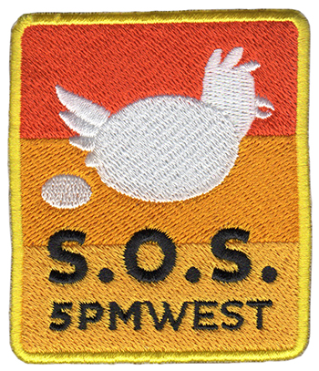 S.O.S. 5PM West This special patch is presented to the Green Stewarsd in The New Children's Museum in San Diego that is taking care of a new flock of hens call S.O.S.5pmWest for the show Feast! The Art of Playing with your Food
